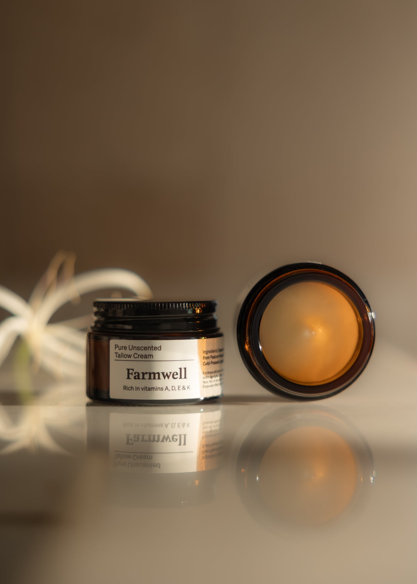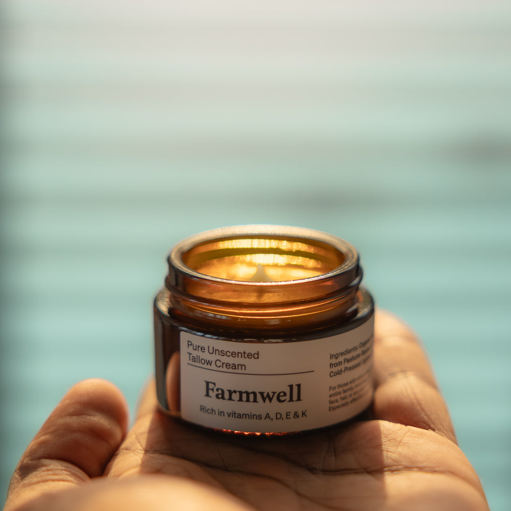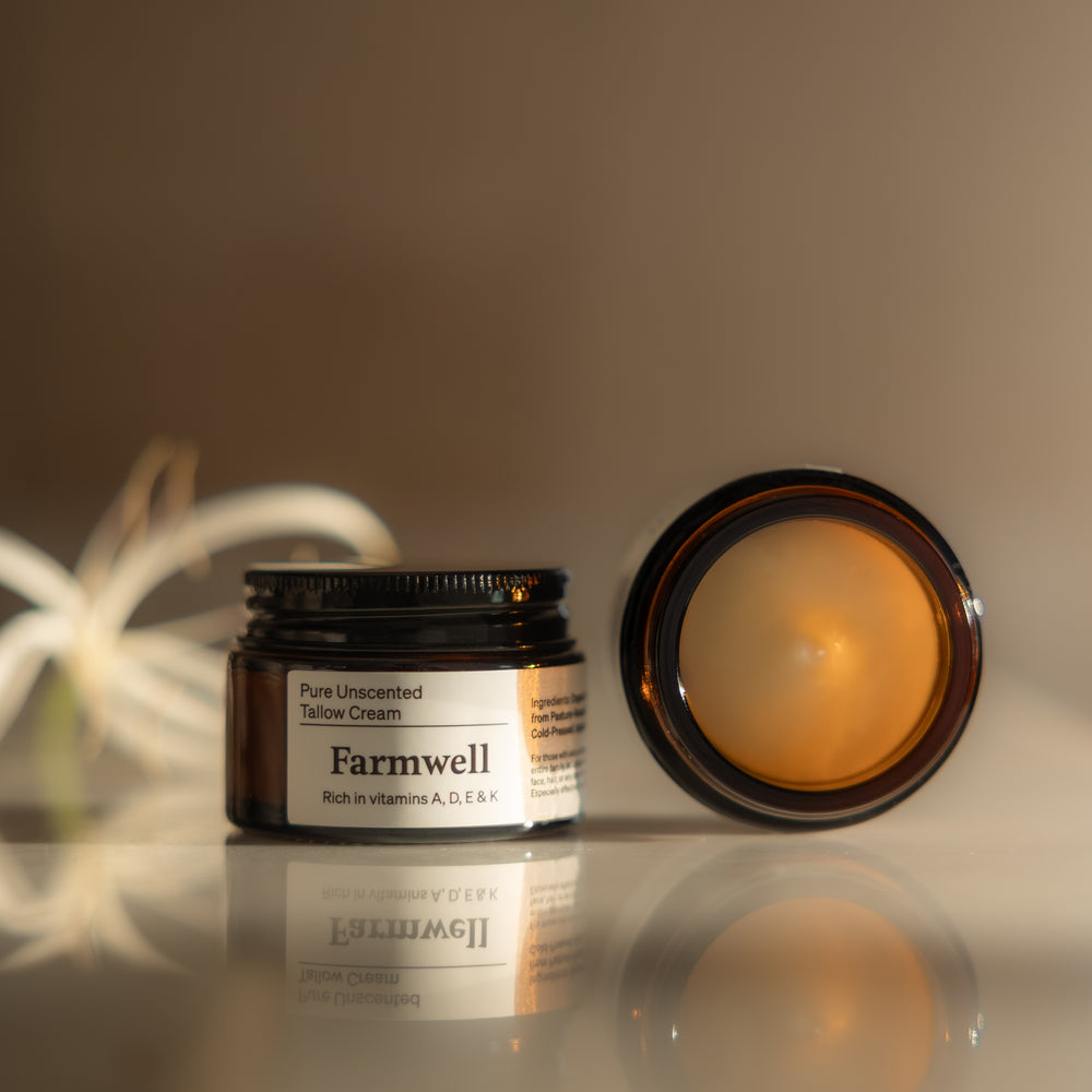 Indulge in simplicity with Farmwell's Pure Unscented Tallow Cream, a versatile skincare solution crafted to deeply nourish and protect your skin with pure, natural care. Its luxuriously creamy texture absorbs effortlessly, blending seamlessly into your skin to provide lasting moisture and a radiant, healthy glow. Featuring just 2 nutrient-packed ingredients.